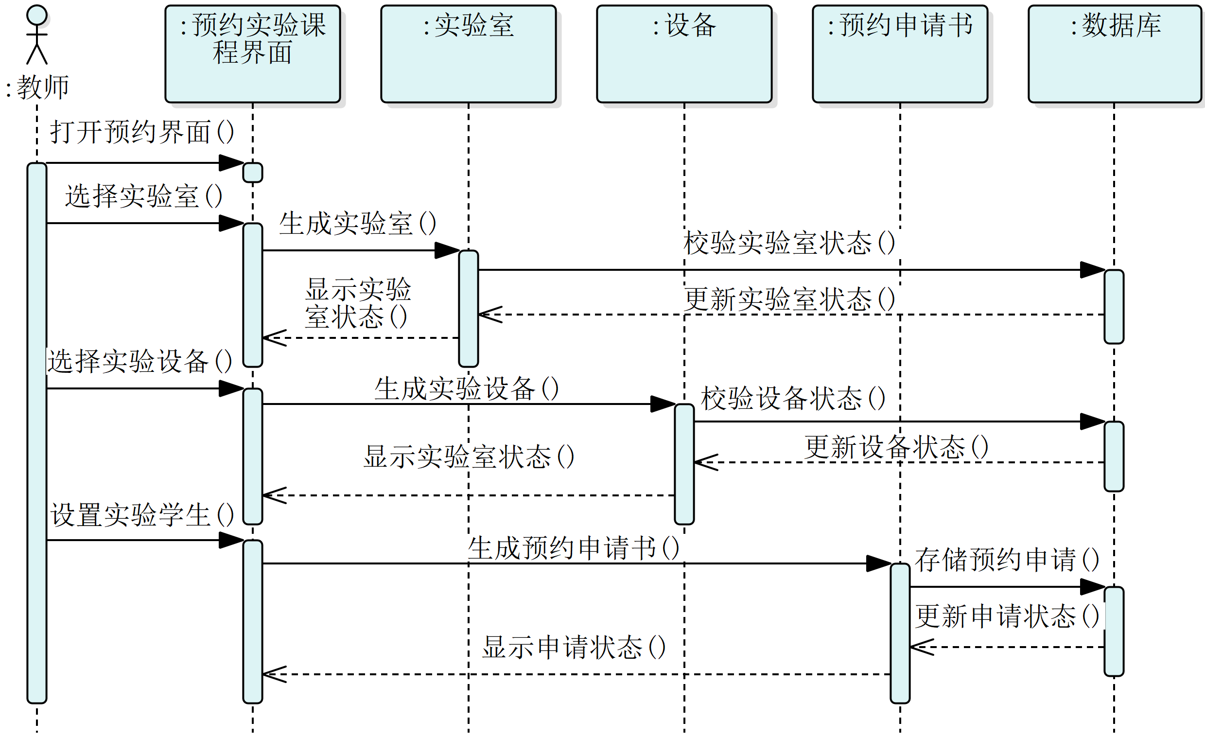 - 顺序图:按时间顺序展示“实验教学实施环节”中对象间的消息传递,聚焦交互细节