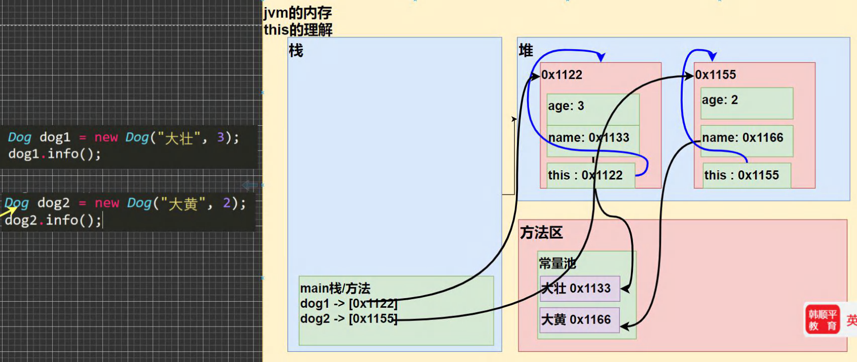 关键字代表当前对象的引用,指向该对象在堆中的地址。JVM 会给每个对象分配一个隐藏的