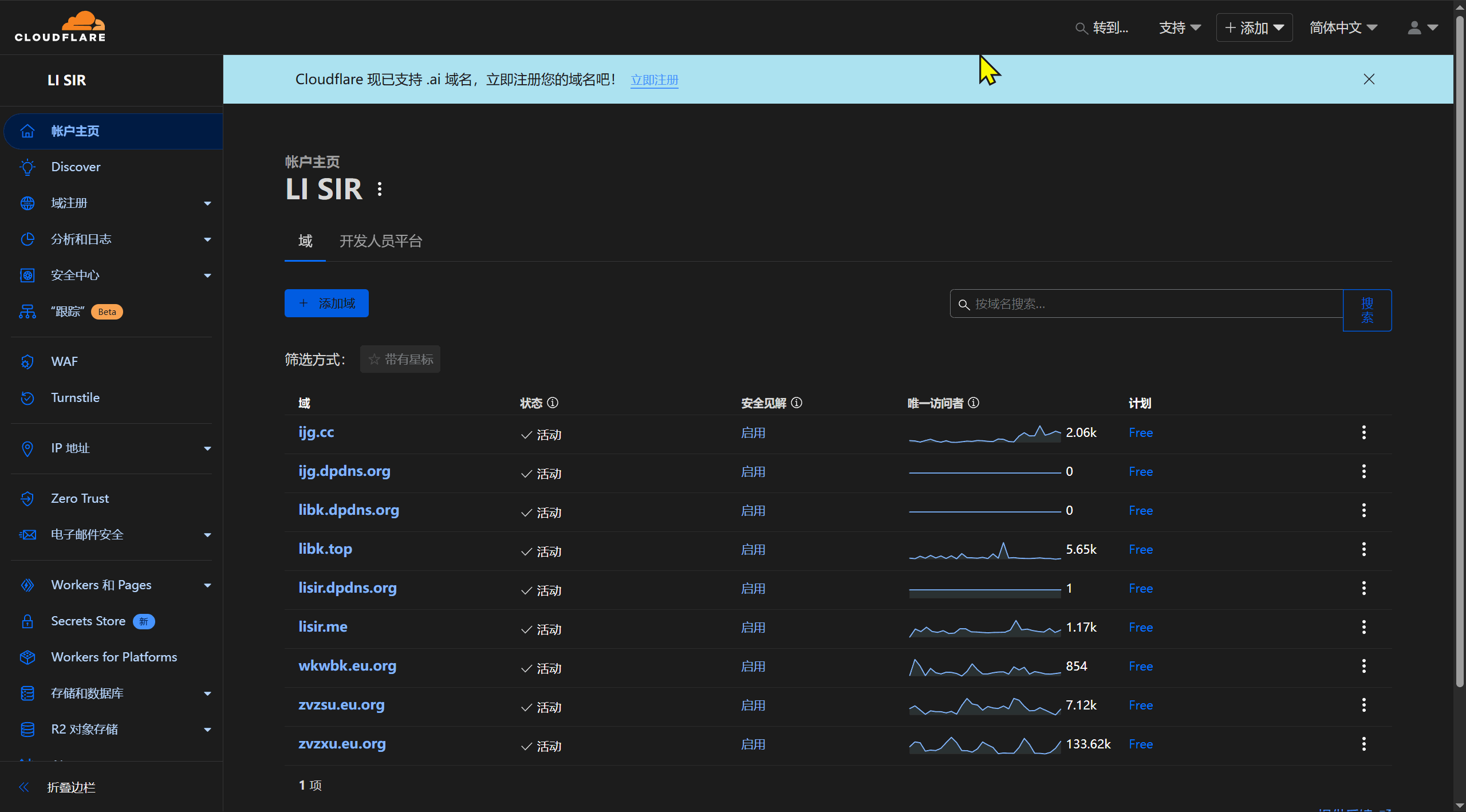 拥有至少一个域名,且 DNS 托管在 Cloudflare