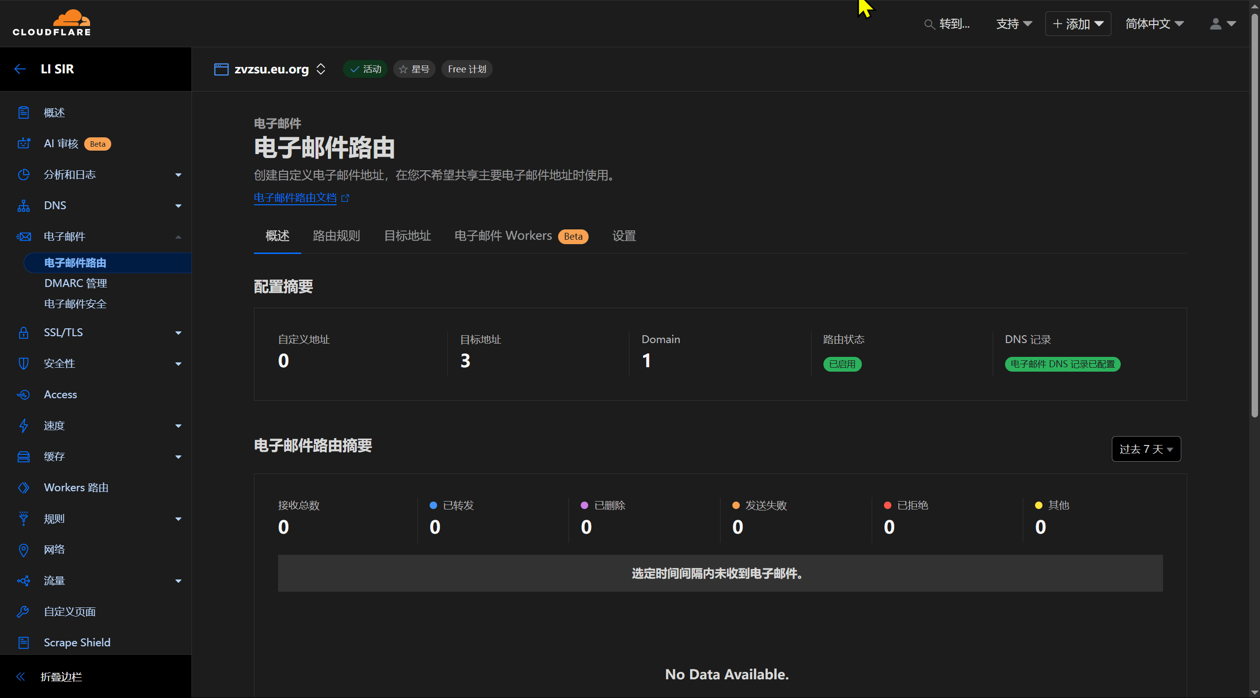 - 在侧边栏找到“电子邮件” → “电子邮件路由”。